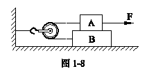 如图1-8所示,重量分别为G1和G2的滑块A和B,由绕过轻质定滑轮的细绳相连后,叠放在水平桌面上,已知A、B间的摩擦因数为μ1