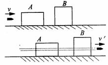 10.如图所示,A、B两质量相等的长方体木块放在光滑水平面上,一颗子弹以水平初速V先后穿过A和B(此过程中A和B没有相碰),子弹穿过B后的速度变为2v/3,子弹在A和B内运动时间tA:tB=l:2,若子弹在两木块中所受阻力相等,求: