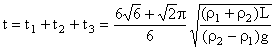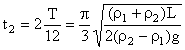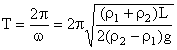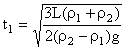 为了求同时在两种液体中运动的时间,先求振动的振幅A。木棍下端刚进入下面液体时,其速度 v=a1t1 ⑨