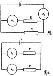 图1、图2所示的两种电路中,电源相同,各电阻器值相等,各电流表的内阻相等且不可忽略不计.电流表