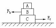 如图所示,物体A、B和C叠放在水平桌面上,水平力Fb=5N,Fc=10N分别作用于物体B、C上,A、B和C仍保持静止,以F1、F2、F3分别表示A与B、B与C、C与桌面间的静摩擦力的大小,则