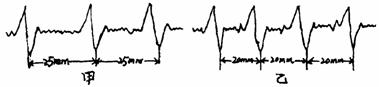 11.心电图是现代医疗诊断的重要手段,医生作电图上测量出相邻两波峰的时间间隔,即为心动周期,由此可以计算出1分钟内心脏跳动的次数(即心率),甲、乙两人在同一台心电图机上做出的心电路如图所示,医生通过测量后记下甲的心率是60次/分,则由二图及甲心率可知心电图机图纸移动的速率V以及乙的心率为( )