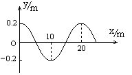 3.图为一列简谐横波在介质中传播的波形图。在传播过程中,某一质点在10s内运动的路程是16m,则 此波的波速是 [ ]
