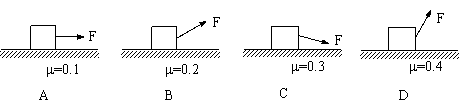1.大小不变的力F按如图所示的四种方式作用在物体上,使物体前进了s,其中力F做功最少的是