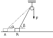 3.如图所示,用竖直向下的力F通过定滑轮拉质量为m的木块,从位置A拉到位置B. 在两个位置上拉物体的绳与水平方向的夹角分别为α和β. 设滑轮距地面高为h,在此过程中恒力F所做的功为____________。