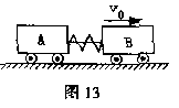 18.(13分)如图13所示,光滑轨道上,小车A、B用轻弹簧连接,将弹簧压缩后用细绳系在A、B上。然后使A、B以速度v0沿轨道向右运动,运动中细绳突然断开,当弹簧第一次恢复到自然长度时,A的速度刚好为0,已知A、B的质量分别为mA、mB,且mA<mB。求: