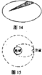 如果人造地球卫星沿半径为r的圆轨道绕地球运动,当开动制动发动机后,卫星速度降低并转移到与地球相切的椭圆形轨道,如图15所示。