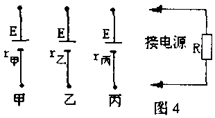 6.如图4所示,用甲、乙、丙三个电动势E相同而内电阻r不同的电源,分别给定值电阻R供电。已知甲、乙、丙三个电源的内电阻的大小关系为:r甲>r乙>r丙,且r乙=R,则将R先后接在这三个电源上时的情况相比,下列说法中正确的是