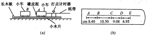 (1) 若已得到打点纸带如图(b),并测得各计数点间距标在图上.A为运动起始的第一点.则应选______段来计算A的碰前速度.应选______段来计算A和B碰后的共同速度.(以上两格填“AB”、“BC”、“CD”或“DE”)