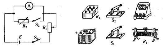 12.下图中电源的电动势为E,R1为滑动变阻器,R2为电阻箱,A为电流表,用此电路经以下步骤可近似测量A的内阻RA:①闭合S1,断开S2,调节R1,使电流表读数等于其量程I0;②保持R1不变,闭合S,调节R2,使电流表读数等于I0/2,然后读出R2的值,取Rl=R2.
