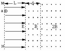 如图所示,水平方向的匀强电场的场强为E(场区宽度为L,竖直方向足够长),紧挨着电场的是垂直纸面向外的两个匀强磁场区,其磁感应强度分别为B和2B.一个质量为m、电量为q的带正电粒子(不计重力),从电场的边界MN上的a点由静止释放,经电场加速后进入磁场,经过tB=