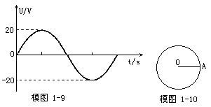 13.将电阻 R两端接在20V的直流电源上时,它的功率是10W,如果将这个电阻 R接在如模图1-9所示的正弦交流电源上,则电阻消耗的实际功率__________。
