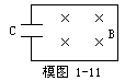 16.如模图1-11所示,一个电路中接有一个电容器,有一磁场垂直穿过线圈平面,磁感应强度的大小随时间以5×10-3T/s增加,已知电容为10mF,线圈面积为1.0×10-2m2,则电容器的带电量为_______,电容器上极板带_______电荷。