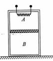 一圆筒形气缸静置于地面上,如图所示。可沿气缸壁自由活动的绝热活塞,将气缸分割成体积相等的A、B两部分,在气缸顶部有一电热丝。开始时两部分气体温度相同,均为270C,A部分气体的压强为PA=1.0´105Pa,B部分气体的压强为PB=2.0´105Pa。现通过电热丝对A气体加热,B气体温度保持不变,活塞下降,当B气体的体积减少为原来的2/3时,求