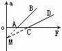 9. 质量为m的重物放在水平地面上,地面处的重力加速度为g,现用一细绳将重物向上提,提的力从零逐渐增大,得到物体的加速度随提力变化的图线为图中的MAB,若在同一坐标系中另有表示相同实验情况的MCD图线,那么关于MCD图线所描述运动的物体的质量m'和实验地点的重力加速度g',有如下的关系 ( )