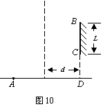 如图10所示,BC是竖直放置的长L = 0.5m的平面镜,一小球从某处自由下落,其轨迹跟平面镜相距d = 0.24m,在A处从平面镜中能看到小球的时间为0.2s。求小球下落多少时间,A处才能从平面镜中看到它?取g = 10m/s2,AD = 0.4m。