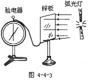 4.在演示光电效应的实验中,原来不带电的一块锌板与灵敏验电器相连,用弧光灯照射锌板时,验电器的指针就张开一个角度,如图4-4-3所示,这时 [ ]