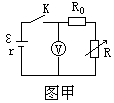17.(6分)一种供仪器使用的小型电池标称电压为9V,允许电池输出的最大电流为50mA,为了测定这个电池的电动势和内电阻,实验室利用了图甲所示电路,图中电压表内阻很大,可不考虑对电路的影响,R为电阻箱,阻值范围为0-9999Ω,R0是保护电阻。