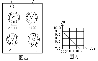 (2)在实验中,当变阻箱各旋钮调到图乙所示位置后,闭合开关,电压表示数为9.0V,变阻箱此时电阻为______Ω,电路中通过电阻箱电流为___________mA