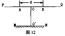 14.(11分)如图12所示,足够大的方格纸PQ水平放置,每个方格纸边长l,.在其正下方水平放置一个宽度为L的平面镜MN,在方格纸上有两个小孔A和B,AB宽度为d,d恰为某人两眼间的距离,此人通过A、B孔从平面镜里观察方格纸,两孔的中点O和平面镜中点O'在同一竖直线上.请: