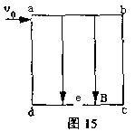 17.(13分).如图15所示,abcd是一个正方形的盒子。在cd边的中点有一小孔e,盒子中存在着沿ad方向的匀强电场,场强大小为E,一粒子源不断地从a处的小孔沿ab方向向盒内发射相同的带电粒子,粒子的初速度为v0,经电场作用后恰好从e处的小孔射出,现撤去电场,在盒子中加一方向垂直于纸面的匀强磁场,磁感应强度大小为B(图中末画出),粒子仍恰好从e孔射出(带电粒子的重力和粒子之间的作用力均可忽略不计)