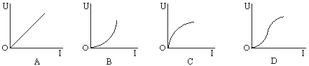 一个标有“220V 60W”的白炽灯泡,加上的电压U由零逐渐增大到220V。在此过程中,电压(U)和电流(I)的关系可用图线表示。题中给出的四个图线中,肯定不符合实际的是( )