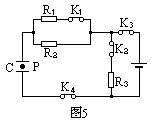 在如图5电路中,电键K1、K2、K3、K4均闭合,C是极板水平放置的平行板电容器,板间悬浮着一油滴P.断开哪一个电键后P会向下运动?( )