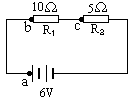 在图示电路的三根导线中,有一根是断的,电源、电阻器R1、R2及另外两根导线都是好的。为了查出断导线,某学生想先将万用表的红表笔连接在电源的正极a,再将黑表笔分别连接在电阻器R1的b端和R2的c端,并观察万用表指针的示数。在下列选挡中,符合操作规程的是( )