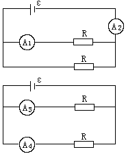 11、图示的两种电路中,电源相同,各电阻器阻值相等,各电流表的内阻相等且不可忽略不计。电流表A1、A2、A3和A4读出的电流值分别为I1、I2、I3和I4。下列关系式中正确的是