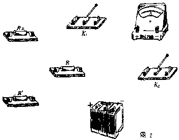 (2)测量Rx的步骤为:将K2向d闭合,K1向__________闭合,记下电流表读数l1,再将K2向c闭合,K1________向闭合,记电流表读数I2。计算Rx的公式是Rx=__________