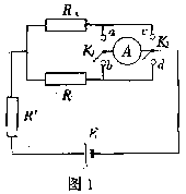 (7分)图1为测量电阻的电路,Rx为待测电阻,R的阻值己知,R为保护电阻,阻值未知。电源E的电动势未知,K1、K2均为单刀双掷开关。A为申流表,其内阻不计