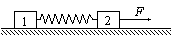 在光滑水平面上放有两个质量分别为m1、m2的铁块1、2,中间用一原长为L、劲度系数为k的轻弹簧连接起来。现用一水平力F拉铁块2,如图所示,当两铁块一起做匀加速直线运动时,两铁块间的距离为