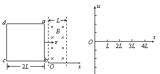 (1)以磁场的左边界为x轴的原点,请在坐标中定量画出线框在穿过该磁场的过程中,a、b两点的电势差u随ab边的位置x而变化的图象(a点电势高于b点电势时u为正)。