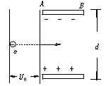 13.如图14-9-10所示,有一电子(电量为e)经电压U0加速后,进入两块间距为d、电压为U的平行金属板间.若电子从两板正中间垂直电场方向射入,且正好能穿过电场.求: