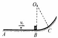 19..水平轨道AB,在B点处与半径R=300m的光滑弧形轨道BC相切,一个质量M为0.99kg的木块静止在B处,现有一颗质量m为10g的子弹500m/s水平速度从左边射入木块且未穿出,如图所示.已知木块与该水平轨道AB间的摩擦因数μ=0.5,g取10m/s2.求:子弹射入木块后,木块需经过多长时间停止运动?(cos5°=0.996)