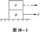 1.如图10-1所示,质量不等的A、B两长方体迭放在光滑的水平面上,第一次用水平恒力F拉A,第二次用水平恒力F拉B,都能使它们一起沿水平方向运动,而A、B之间没有相对滑动,则两种情况( )