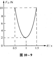 14.(6分)在研究两个共点力合成的实验中得到如图10-9所示的合力F与两个分力的夹角θ的关系图,则此合力的最大变化范围是___________,两分力的大小分别是___________。