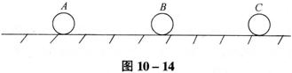 20.(14分)如图10-14所示,在光滑绝缘的水平面上沿一直线等距离排列三个小球A、B、C,三球质量均为m,相距均为L,若三球均带电,且