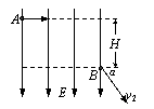 空间某区域存在竖直向下的匀强电场,电场线分布如图所示。带电小球质量为m,电量为q,在A点速度为v1,方向水平向右,至B点速度为v2,v2与方向水平的夹角为α,A、B间的高度差为H。以下判断正确的是( )