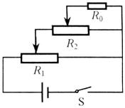8、在许多精密的仪器中,如果需要较精确地调节某一电阻两端的电压,常常采用如图7所示的电路。通过两只滑动变阻器R1和R2对一阻值为500Ω左右的电阻R0两端电压进行粗调和微调。已知两个滑动变阻器的最大阻值分别为200Ω和10Ω。关于滑动变阻器R1、R2的联接关系和各自所起的作用,下列说法正确的是( )