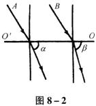 5.A、B为两束平行的单色光,当它们从空气中透过界面OO′射入水中时分别发生如图8-2所示的折射现象已知α<β,则( )