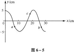9.如图6-5所示,一列沿x轴正方向传播的横波,波速为100m/s,某时刻波形如图所示,则下列说法正确的应是 ( )
