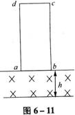 20.(14分)如图6-11所示,一质量m=0.10kg,电阻R=0。10Ω的矩形金属框abcd由静止开始释放,沿竖直向下的方向进入匀强磁场,磁场方向如图所示,磁感应强度B=0.5T,已知金属框宽L=0.20m,足够长。当金属框下降了h=0.50m(即进入磁场的高度时)已产生了Q=0.45J的热量,这时金属框的cd边仍在磁场外。