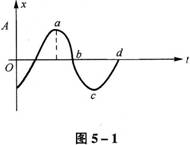 2.货车在水平道路上行驶,货物随车厢底板上下振动而不脱离底板,设货物的振动为简谐振动,以向上的位移为正,其振动图象如图5-1所示,在图象上取a、b、c、d四点,则下列说法正确的是( )