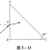 18.(12分)如图5-13所示用某种透明材料制成一块等腰直角棱镜,其顶点为A、B、C,使光线从AB面入射,调整到入射角θ取某个特殊值,恰能使它射入棱镜后在AC面上满足全反射临界条件。试求此材料的折射率n的大小。