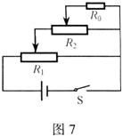 6.在许多精密的仪器中,如果需要较精确地调节某一电阻两端的电压,常常采用如图7所示的电路。通过两只滑动变阻器