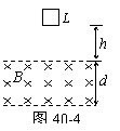 **9.(4分)如图40-4所示,两条水平虚线之间有垂直于纸面向里,宽度为d,磁感应强度为B的匀强磁场.质量为m,电阻为R的正方形线圈边长为L(L< d),线圈下边缘到磁场上边界的距离为h.将线圈由静止释放,其下边缘刚进入磁场和刚穿出磁场时刻的速度都是v0,则在整个线圈穿过磁场的全过程中(从下边缘进入磁场到上边缘穿出磁场),下列说法中正确的是