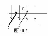 ***13、(7分)如图40-6所示,水平面上固定有平行导轨,磁感应强度为B的匀强磁场方向竖直向下。同种合金做的导体棒ab、cd横截面积之比为2∶1,长度和导轨的宽均为L,ab的质量为m ,电阻为r,开始时ab、cd都垂直于导轨静止,不计摩擦.给ab一个向右的瞬时冲量I,在以后的运动中,cd的最大速度vm=________________,最大加速度am=__________________和cd上释放的电热各是多少?Qab=___________________,Qcd=_____________________。