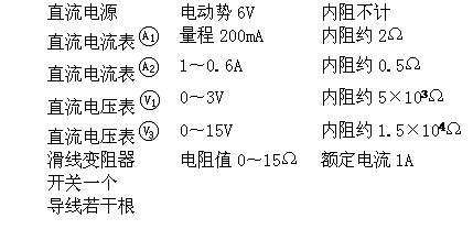 **15、(6分) 为了测定一个“6V、1W”的灯泡在不同电压下的电功率,现有器材如下: