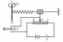 **18、(12分) 角速度计可测量飞机、航天器等的转动角速度,其结构如图所示。当系统OO/转动时,元件A发生位移并输出电压信号,成为飞机、航天器等的制导系统的信号源。已知A的质量为m,弹簧的劲度系数为K、自然长度为L,电源的电动势为E、内阻不计,滑动变阻器总长度为 l。电阻分布均匀,系统静止时P在B点,当系统以角速度ω转动时,请导出输出电压U和ω的函数式。(要求:写出每步理由及主要方程)